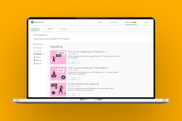 Smart Prep将官方提供的免费及付费备考资源,整合到一个便捷的入口,您可以根据自己独特的需求进行搭配使用。只要简单创建一个免费的MyPTE账户就能开始使用。